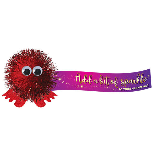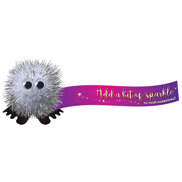 - Logobug with glitter pom and self adhesive base