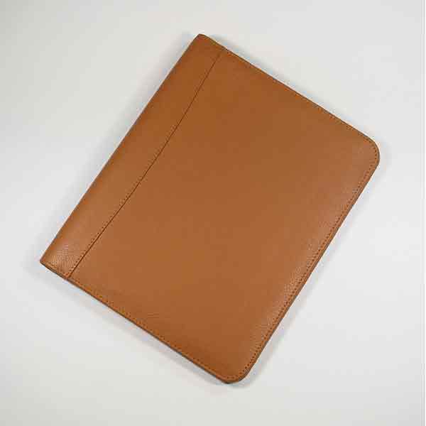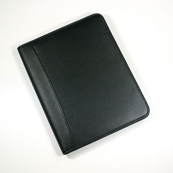 - Full hide grained nappa leather folder with leather internal spine business card pocket, pen loop (pen not included) document pocket and A5 pad
